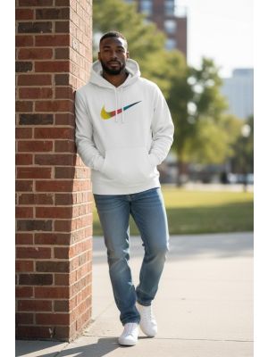 17. NIKE MENS RAINBOW SWOOSH HOODIE-WHITE